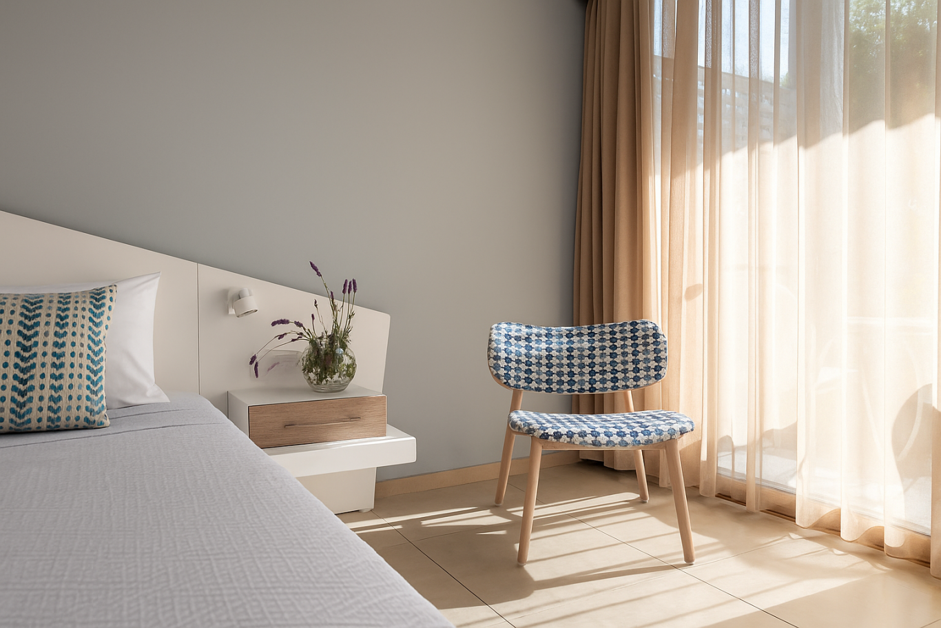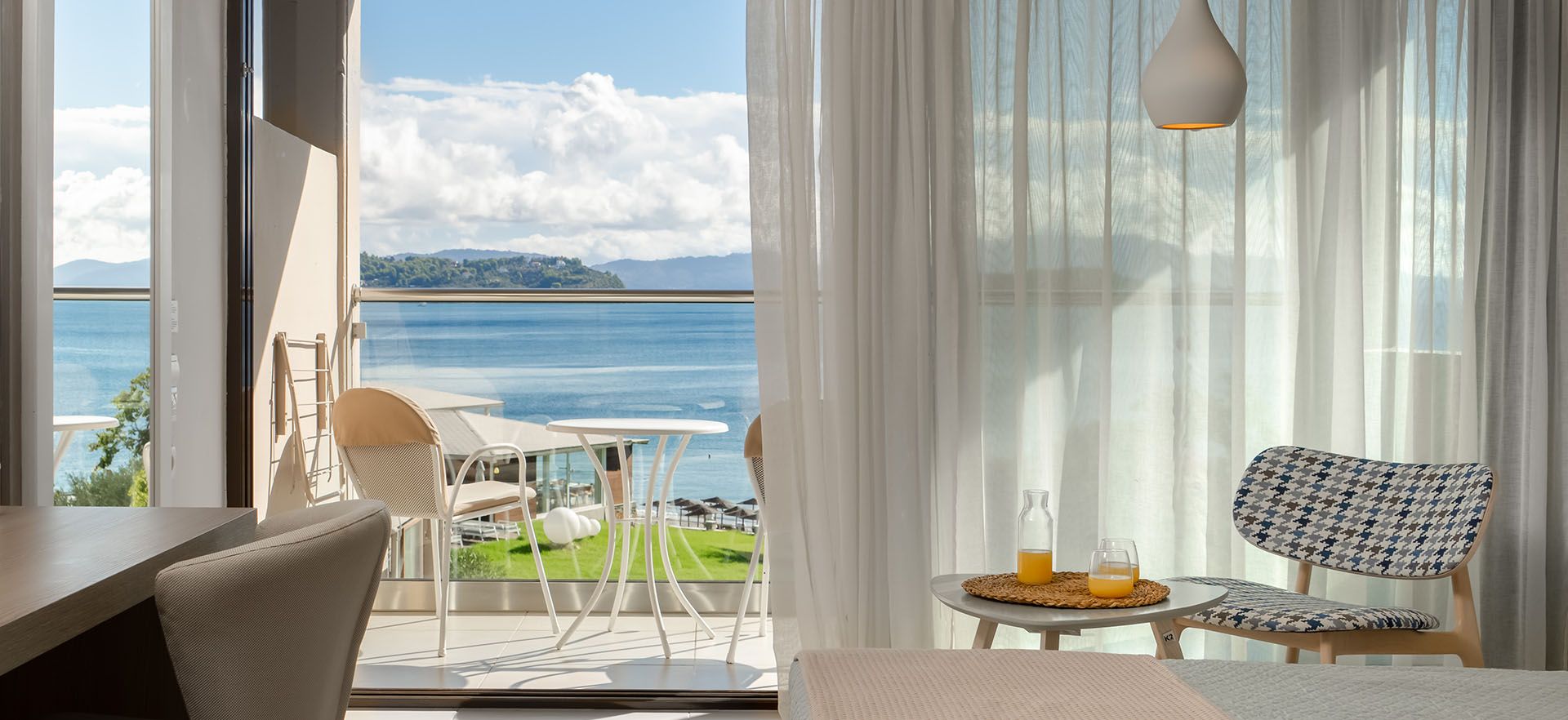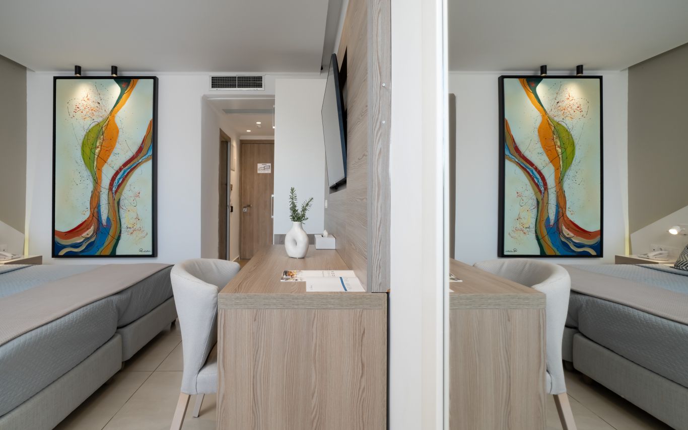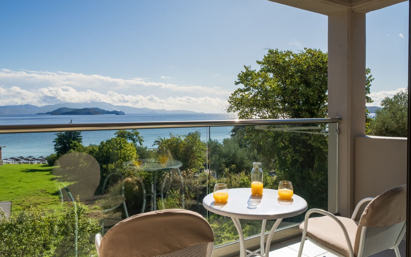 Cozy twin or double rooms that feature earth-tone décor and modern furnishings. The rooms are located either on the ground floor or on floor and offer private terrace or balcony with inland view or sea view.